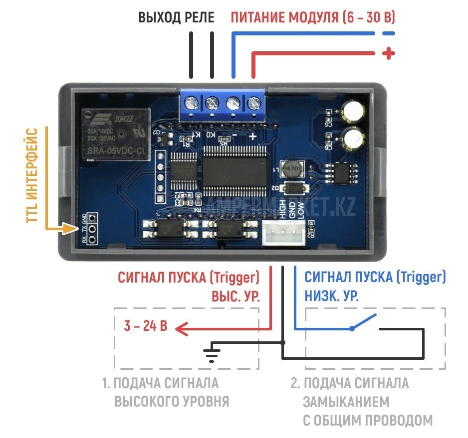 состояние. Сигналы пуска подаются замыканием контактов TRIGGER- и GND (низкоуровневый