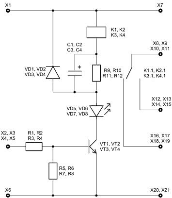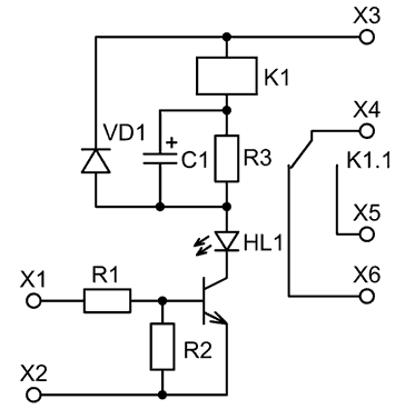 Устройство предназначено для обеспечения управления силовыми электроприборами от слаботочных выходов различных датчиков. Оно обеспечивает гальваническую развязку между датчиками и электроприборами. Устройство состоит из электронного ключа, выполненного на транзисторе и электромеханическом реле. Индикацией срабатывания реле является светодиод. Размеры печатной платы: 32х25 мм.
