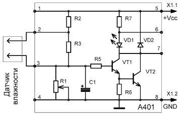 Этот набор предназначен для контроля уровня воды в баке, ванне и других емкостях. По сигналу датчика происходит включение/выключение различных исполнительных устройств: водяной насос, световой или звуковой сигнализатор и т.д. При использовании исполнительных устройств с током нагрузки более 75 мА, необходимо установить промежуточное электромагнитное реле (в комплект набора не входит), параметры которого должны соответствовать коммутируемому току нагрузки. Размеры печатной платы 30х45 мм.