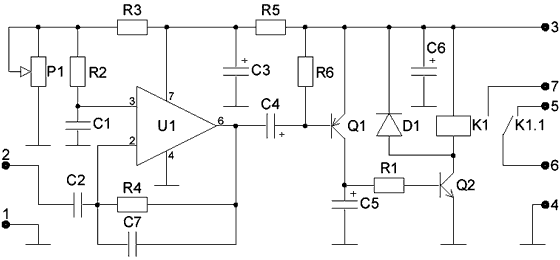 Простое, активируемое голосом, устройство предназначено для использования в передатчиках, радиоприемниках, диктофонах. Коммутатор автоматически включает и выключает прибор, например, магнитофон, при наличии звука или его пропадании. Размеры печатной платы 76х35 мм.