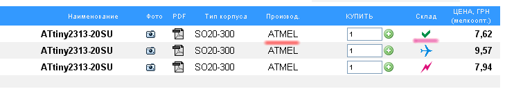 ATtiny2313-20SU - на складе мелкооптовая цена