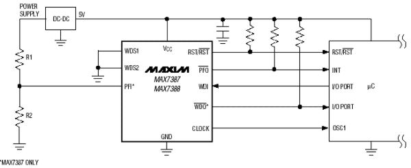 питания. Порог срабатывания супервизора MAX7388 фиксирован. MAX7387