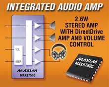 бесфильтровые мостовые стерео УНЧ на 2,6Вт из серии MAX975x от MAXIM |