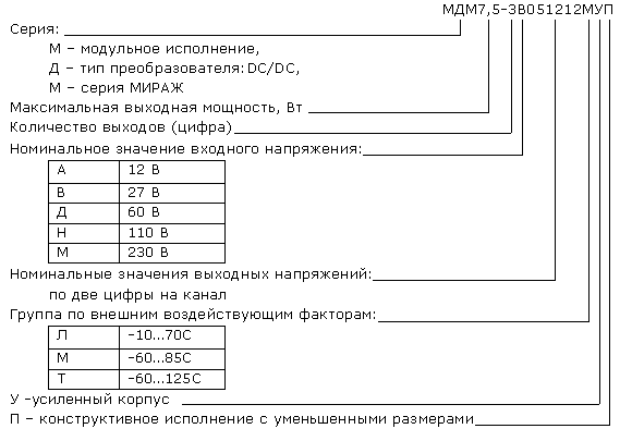 Модули серий МИРАЖ (МДМ) имеют специальную систему обозначений.
