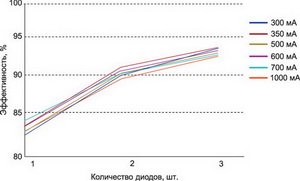 последовательно соединенных светодиодов, включенных в выходную цепь. КПД
