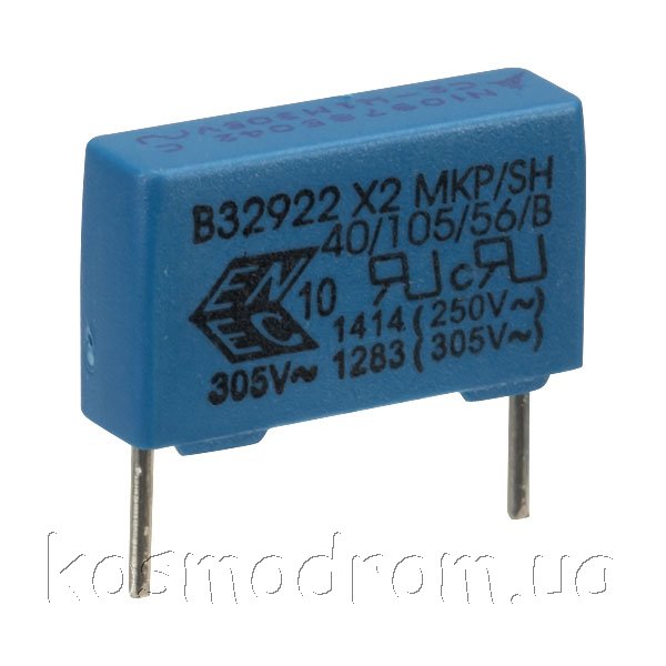 | (CLASS X2-MKP) 0,33mkf-275 VAC (±10%) P:22,5mm Конденсатор полипропиленовый класс X2-MKP Конденсатор помехоподавляющий CLASS X2: металлизированный полипропиленовый пленочный 0,33 мкф. 275 В. 10%. Шаг 22,5 мм.