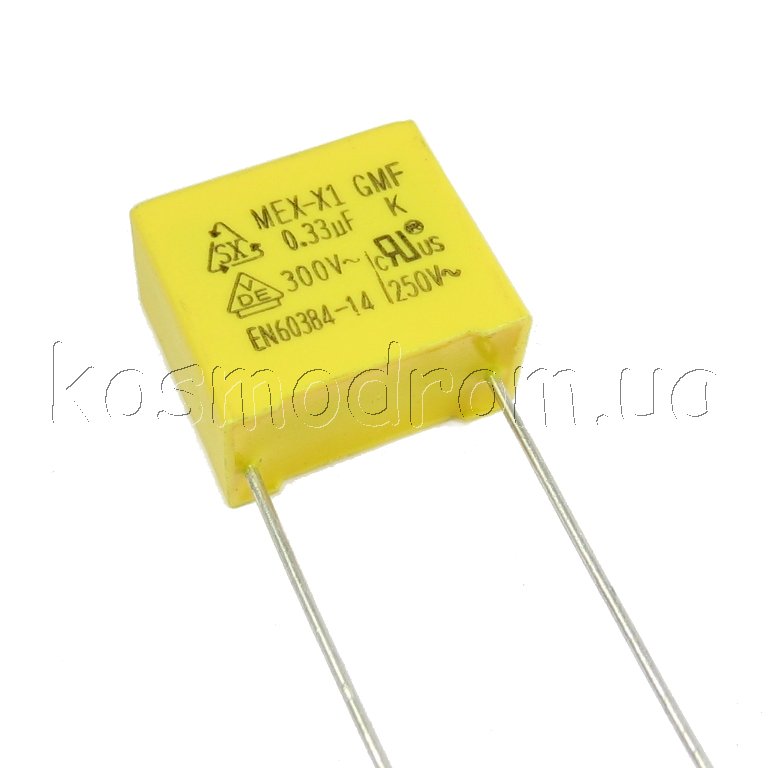 | (CLASS X1-MEX) 0,33mkf-300 VAC (±10%) P:15mm Конденсатор полипропиленовый Class X1 Полипропиленовый помехоподавляющий конденсатор, 0,33 мкФ. 300В. Шаг 15 мм. 10%