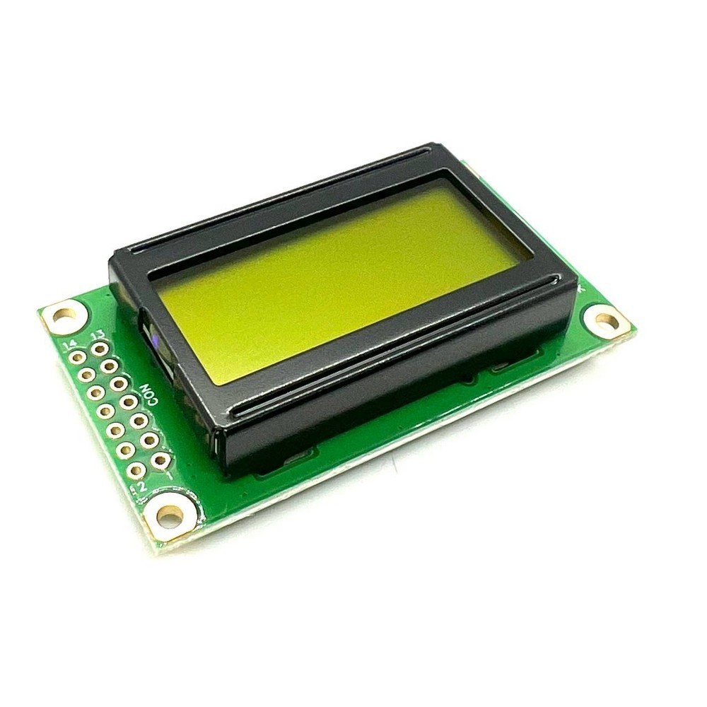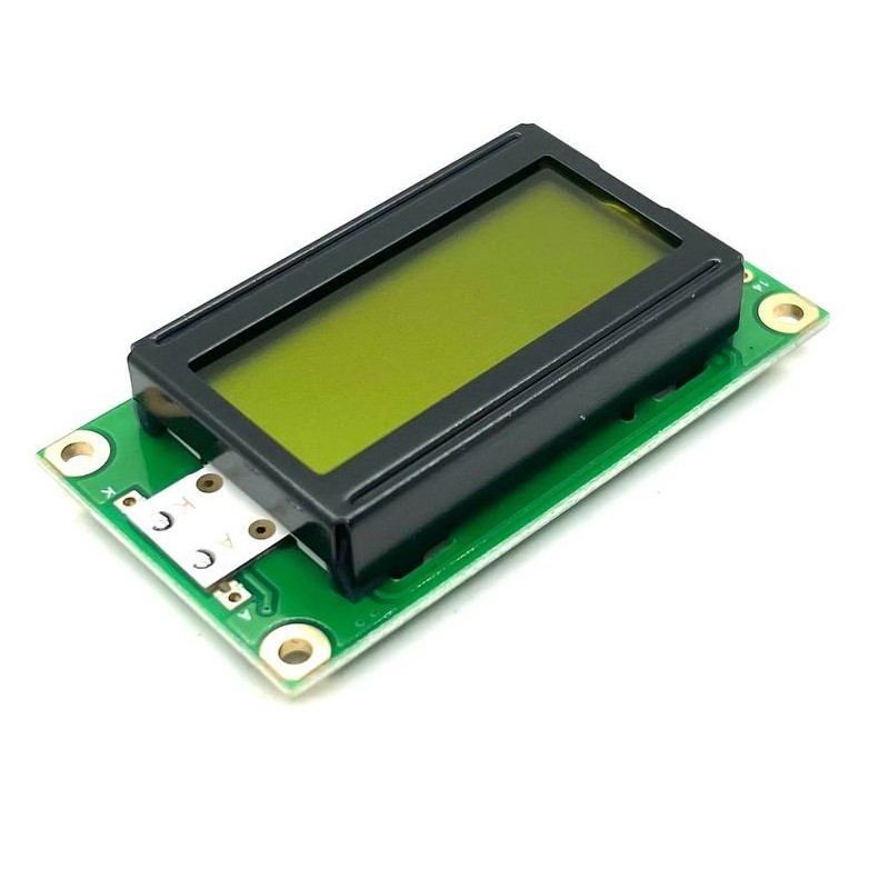 | WH0802A1-YGK-CT Жидко-кристаллическая матрица ЖКИ модуль: 8 символов 2 строки: Размеры 58.0x32.0 мм: цвет символов: серый, фона:желтый, Размер символов 2,96х5,56 мм, English/Cyrillic Font
