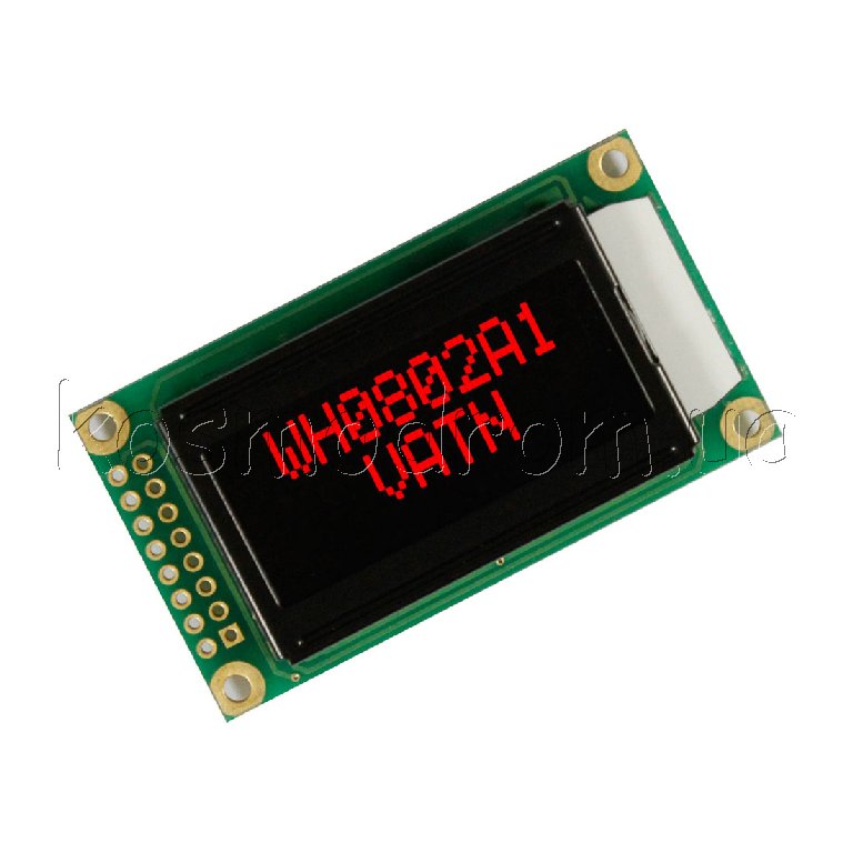 | WH0802A2-NGG-CW-SPI Жидко-кристаллическая матрица Дисплей: символьный, Разрешение: 8х2, Размер: 58?32 мм, Интерфейс: SPI, English/Cyrillic Font