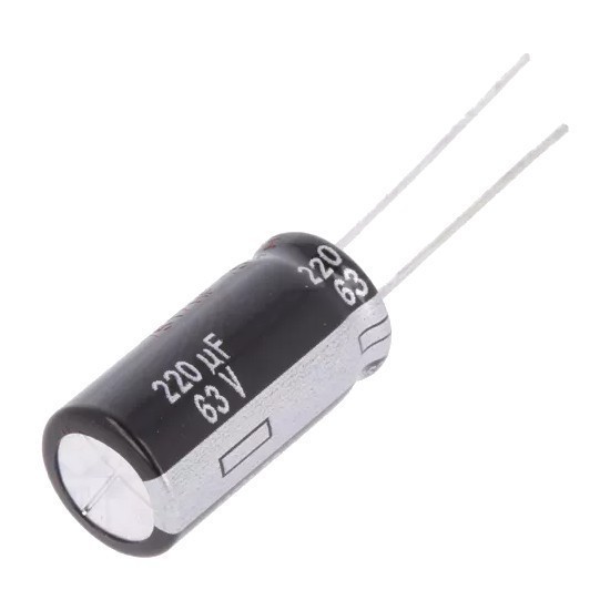 | EEUFC1J221 Конденсатор электролитический Ёмкость 220мкФ, напряжение 63В, размер D10 x 25мм. Импеданс: 130мОм