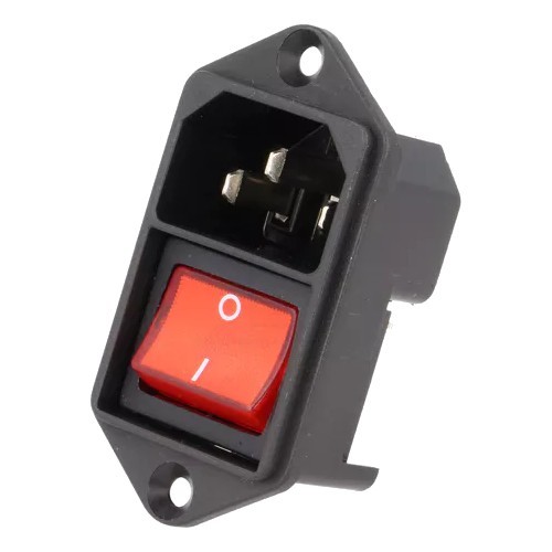 | ACFH-RED-3pin Разъем питания 220v Разъем питания 3 контакта, с выключателем и отсеком для предохранителя. Цвет выключателя: красный. 250 В. 10 А. Без подсветки. Защелки: 1 мм.
