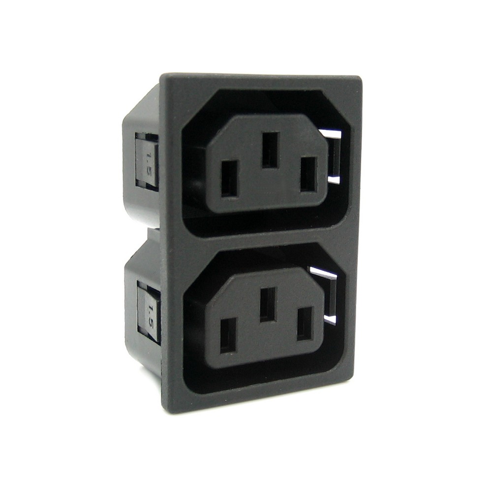 | AS-401-2P Разъем питания 220v Разъем IEC 320 C13. 220В. гнездо (розетка), на блок, 3 контакта, крепление защелка. Количество секций: 2