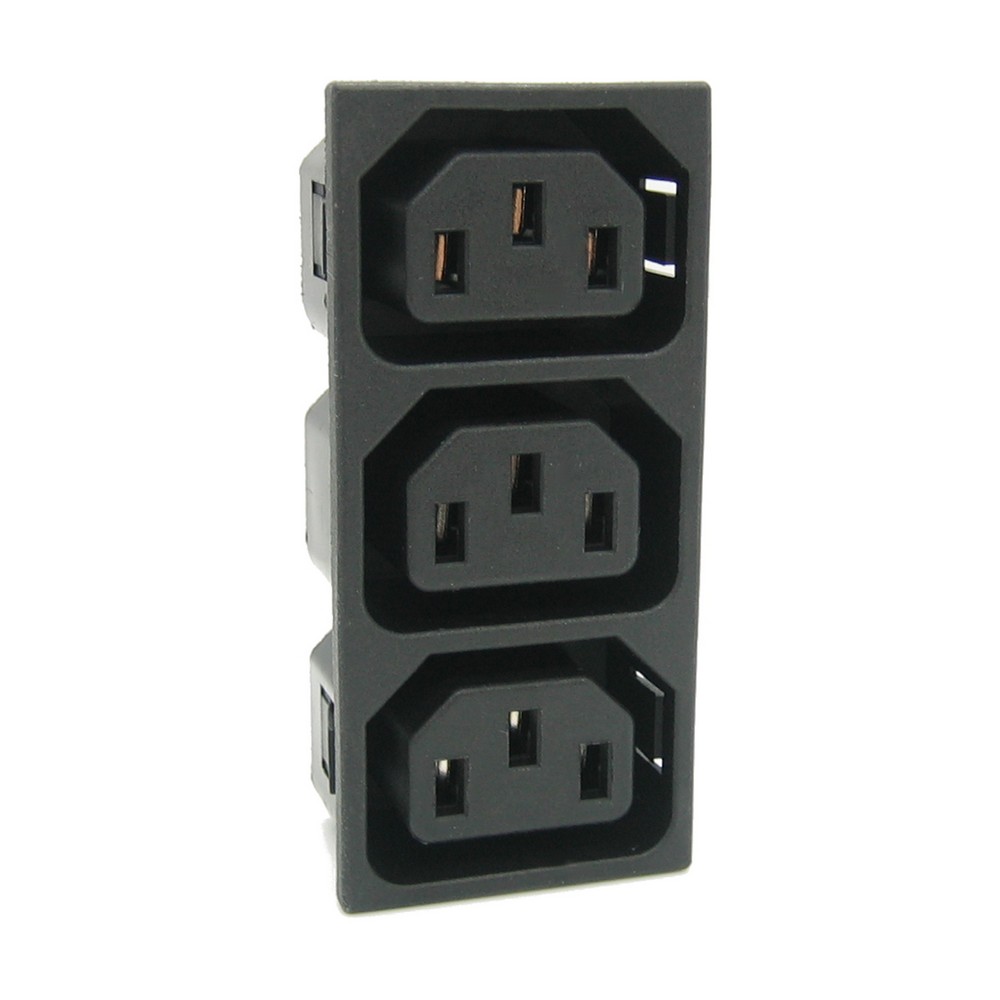| AS-401-3P Разъем питания 220v Разъем IEC 320 C13. 220В. гнездо (розетка), на блок, 3 контакта, крепление защелка. Количество секций: 3