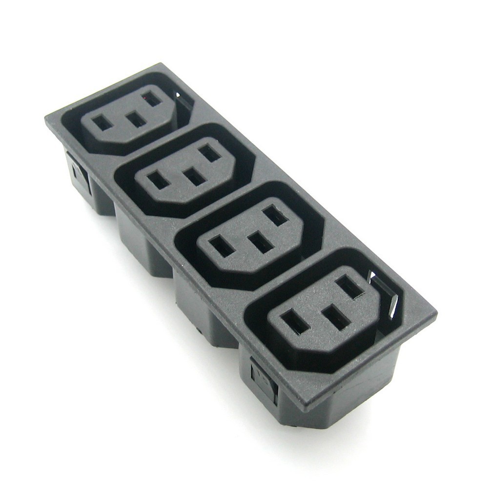 | AS-401-4P Разъем питания 220v Разъем IEC 320 C13. 220В. гнездо (розетка), на блок, 3 контакта, крепление защелка. Количество секций: 4