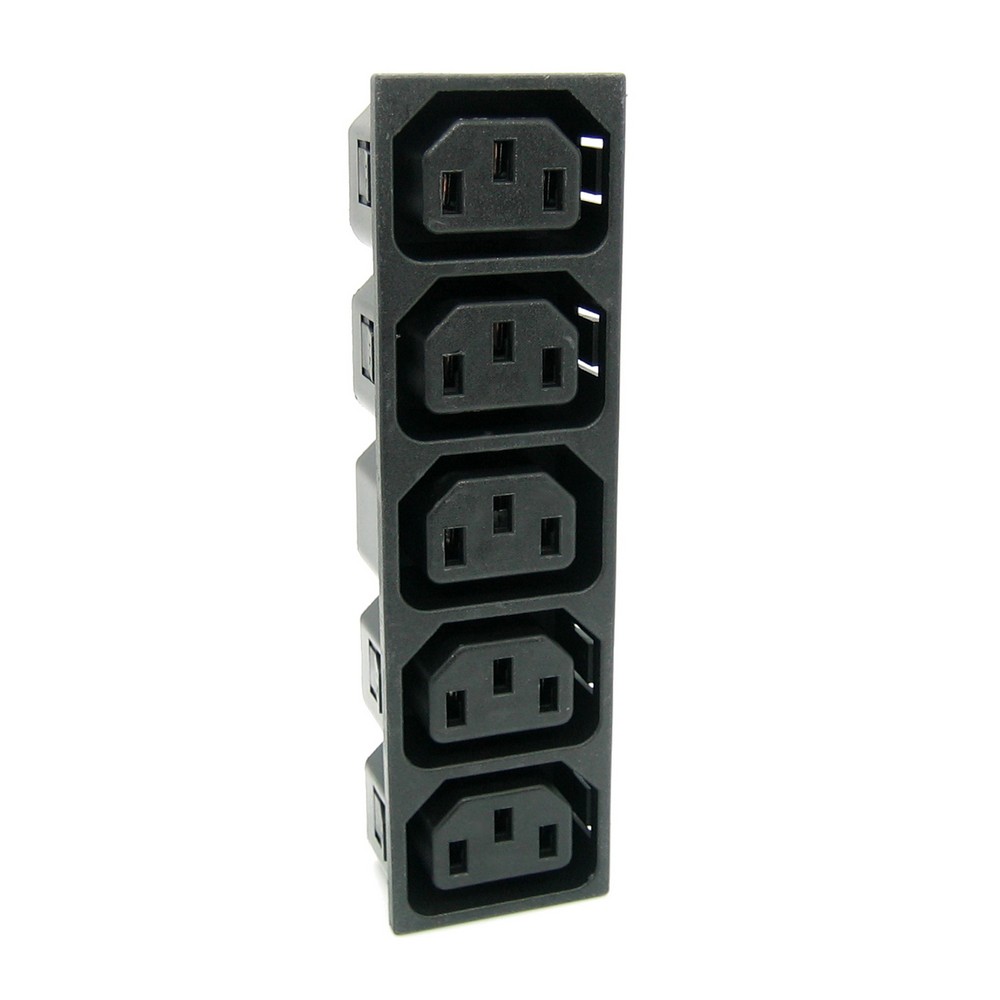 | AS-401-5P Разъем питания 220v Разъем IEC 320 C13. 220В. гнездо (розетка), на блок, 3 контакта, крепление защелка. Количество секций: 5