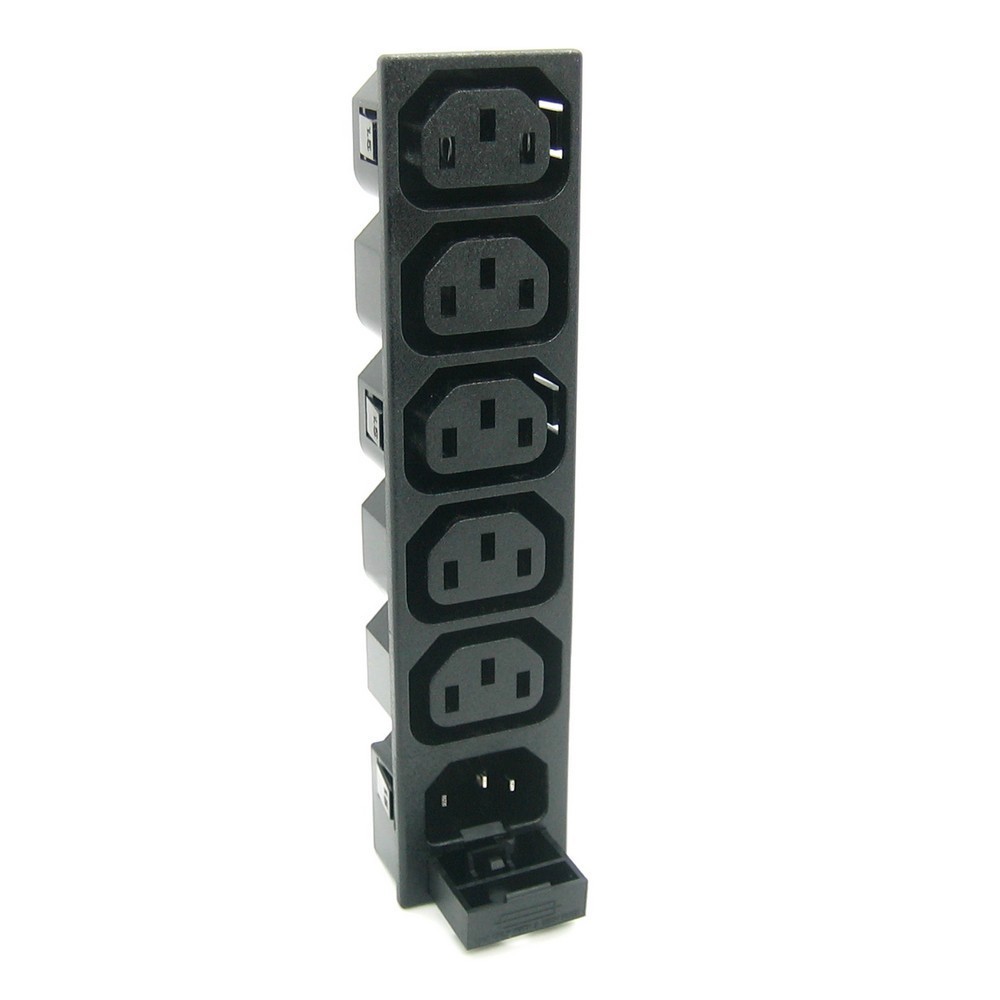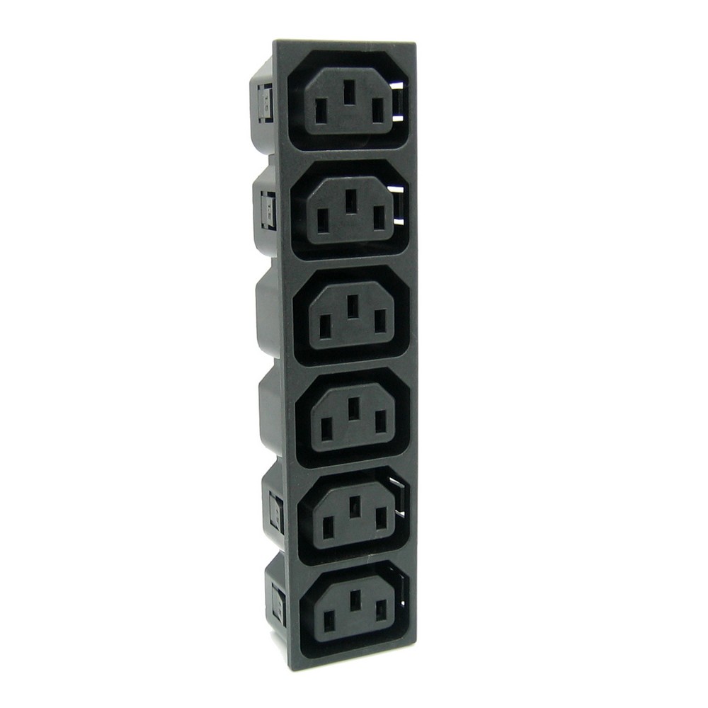 | AS-401-6P Разъем питания 220v Разъем IEC 320 C13. 220В. гнездо (розетка), на блок, 3 контакта, крепление защелка. Количество секций: 6