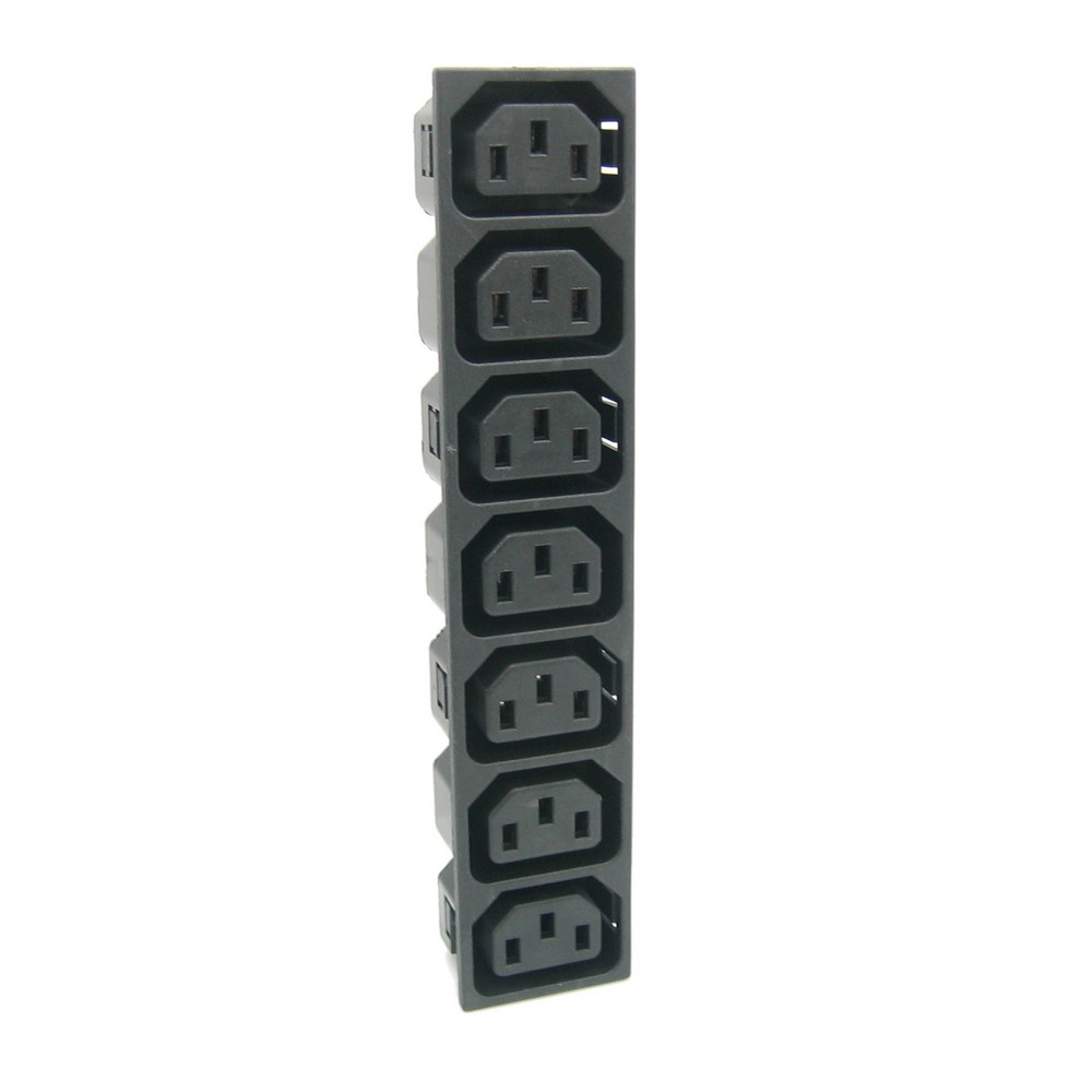 | AS-401-7P Разъем питания 220v Разъем IEC 320 C13. 220В. гнездо (розетка), на блок, 3 контакта, крепление защелка. Количество секций: 7