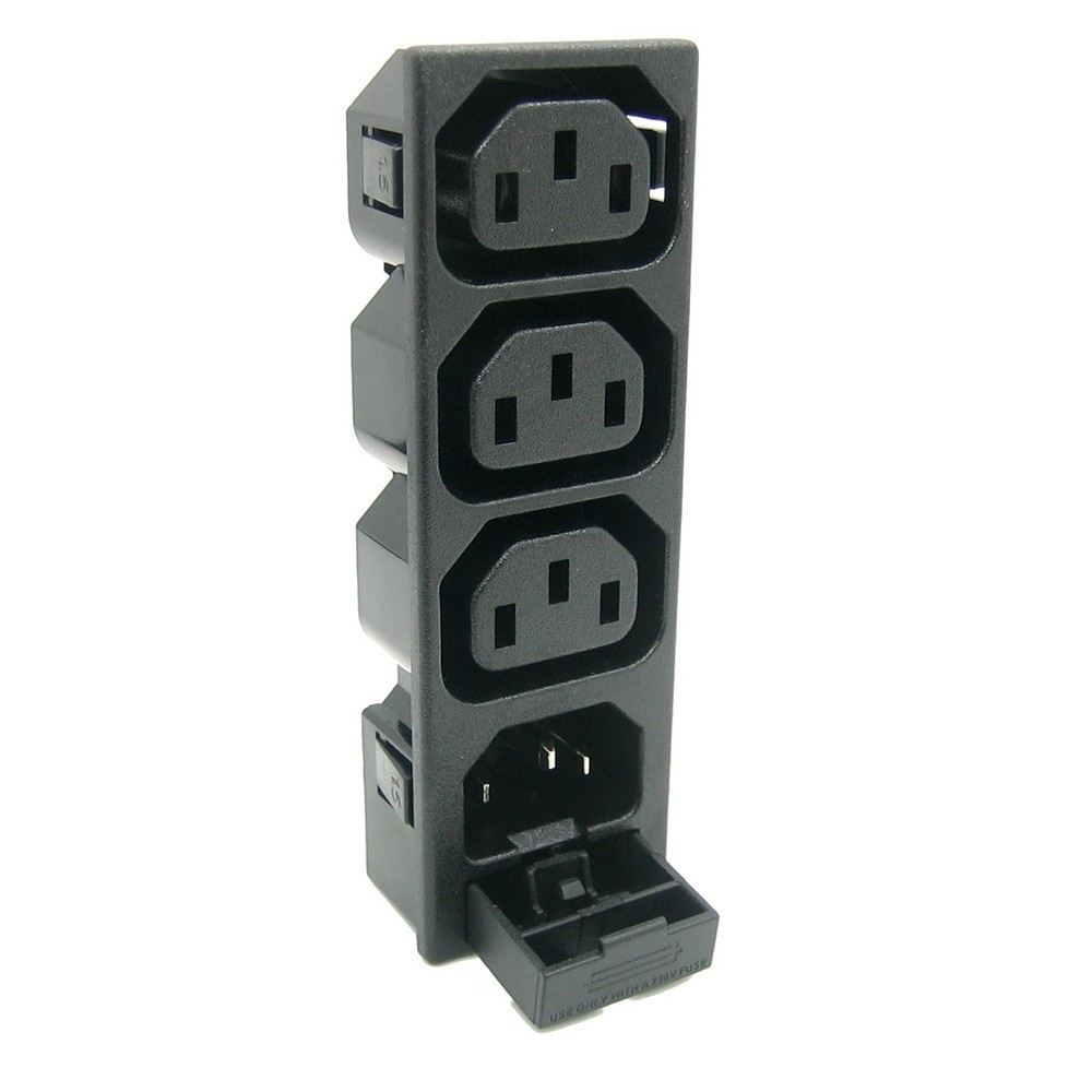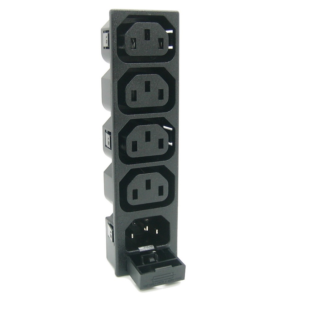 | AS-402-5P Разъем питания 220v Разъем IEC 320 C13+C14. 220В. вилка/розетка, на блок, 3 контакта, крепление защелка. Количество секций вилка: 1 Количество секций розетка: 4. С отсеком для предохранителя