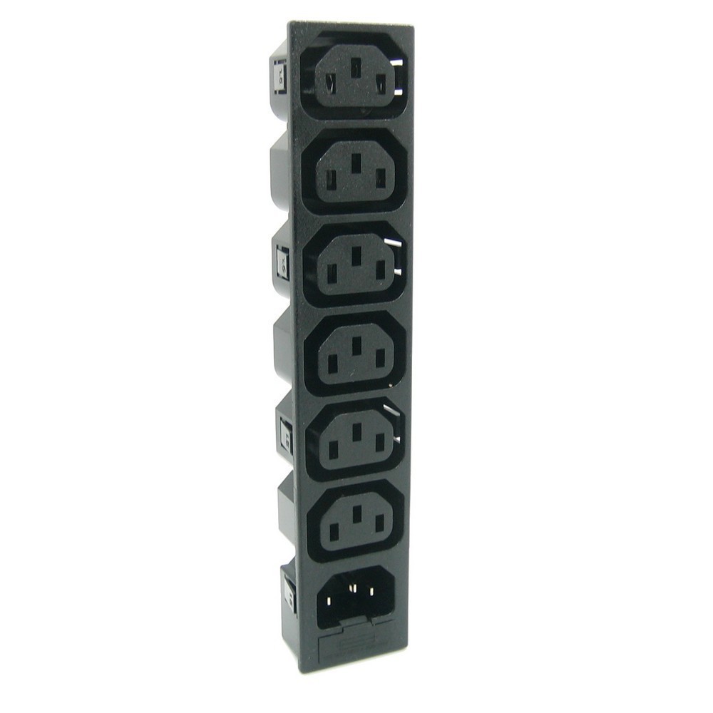 | AS-402-7P Разъем питания 220v Разъем IEC 320 C13+C14. 220В. вилка/розетка, на блок, 3 контакта, крепление защелка. Количество секций вилка: 1 Количество секций розетка: 6. С отсеком для предохранителя