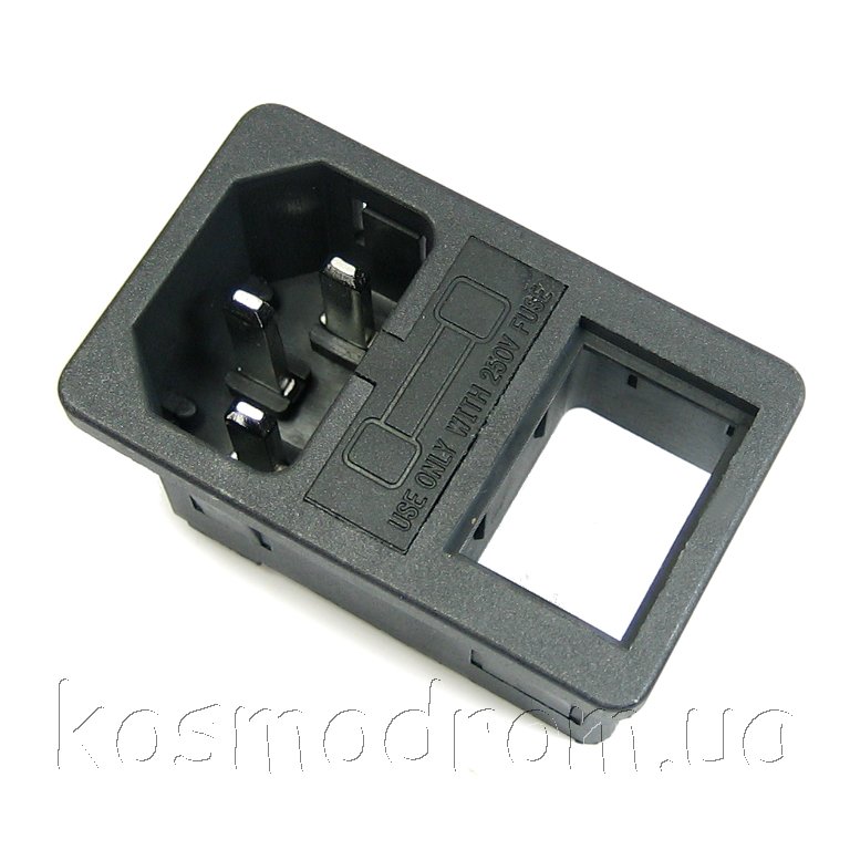 | SP-861 Разъем питания 220v Разъем 220V. Вилка. на блок, 3 контакта, с отсеком для предохранителя, крепление защелка
