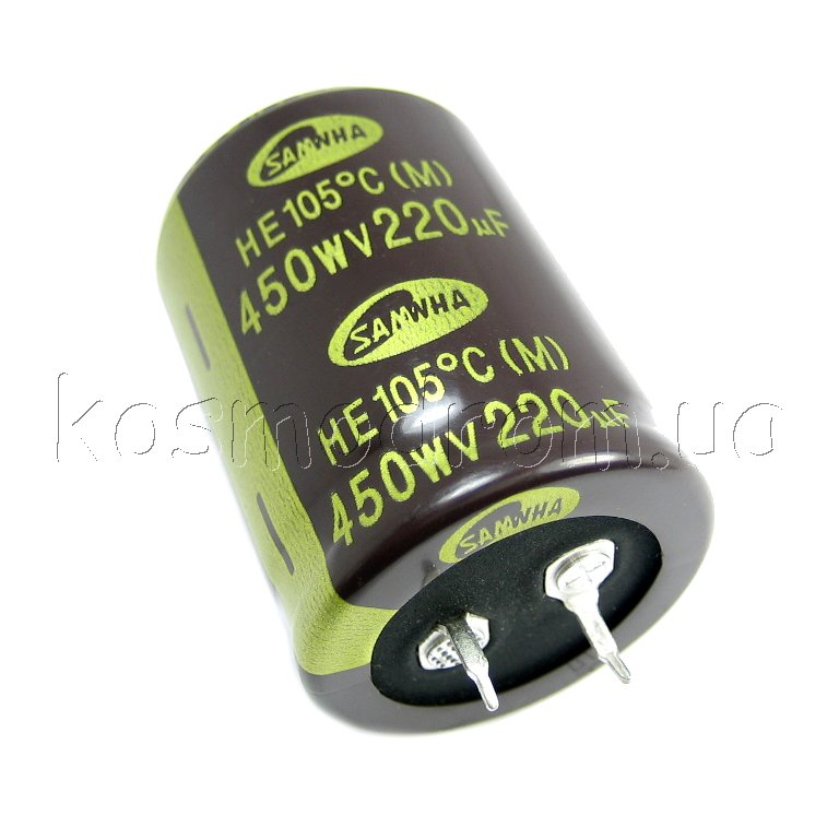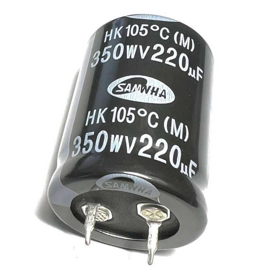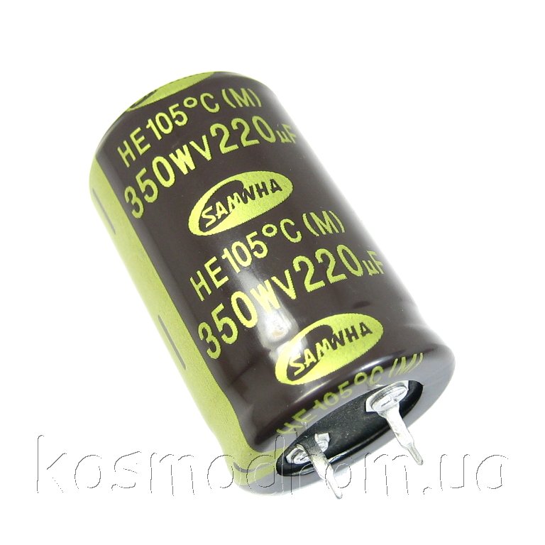 ECAP-HE-220mkf - 350v* (105°C) (HE) Конденсатор электролитический Конденсатор электролитический: 220 мкФ, 350 В. Диаметр 25 мм. Высота 40 мм.Производитель: SAMWHA код товара: 00-00057757 Перейти в группу Конденсатор электролитический