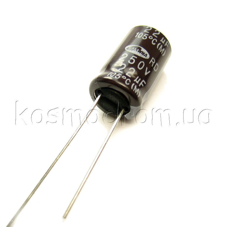 ECAP-RD-22mkf - 250v (105°C) (RD) Конденсатор электролитический Конденсатор электролитический: 22 мкФ, 250 В. Диаметр 10 мм. Высота 16 мм.Производитель: SAMWHA код товара: 00-00050568 Перейти в группу Конденсатор электролитический