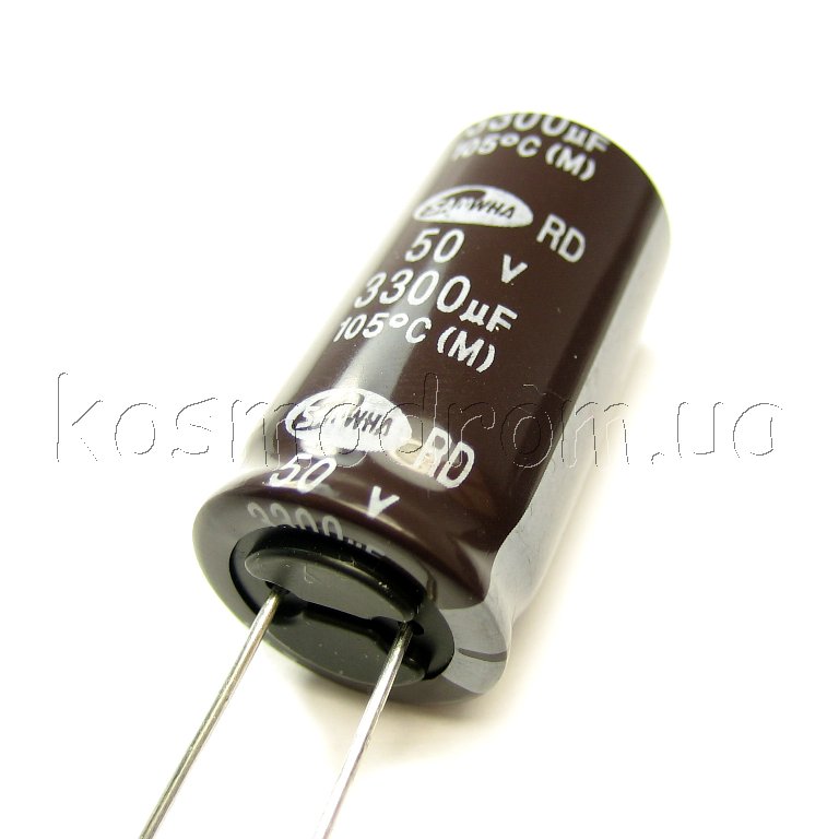 ECAP-RD-3300mkf - 50v (105°C) (RD) Конденсатор электролитический Конденсатор электролитический: 3300 мкФ, 50 В. Диаметр 18 мм. Высота 35 мм.Производитель: SAMWHA код товара: 00-00050302 Перейти в группу Конденсатор электролитический