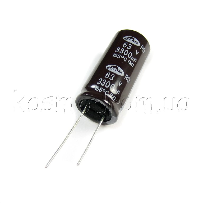 ECAP-RD-3300mkf - 63v (105°C) (RD) Конденсатор электролитический Конденсатор электролитический: 3300 мкФ, 63 В. Диаметр 18 мм. Высота 40 мм.Производитель: SAMWHA код товара: 00-00050303 Перейти в группу Конденсатор электролитический