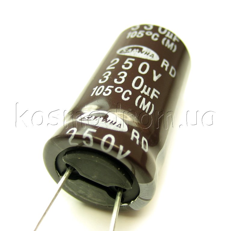 ECAP-RD-330mkf - 250v (105°C) (RD) Конденсатор электролитический Конденсатор электролитический: 330 мкФ, 250 В. Диаметр 22 мм. Высота 41 мм.Производитель: SAMWHA код товара: 00-00050618 Перейти в группу Конденсатор электролитический