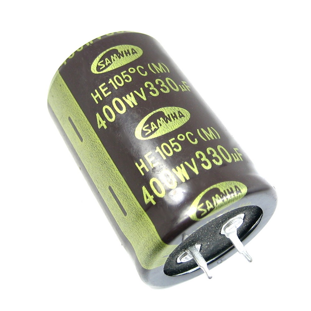 ECAP-HK-330mkf - 400v** (105°C) (HK) Конденсатор электролитический Конденсатор электролитический: 330 мкФ, 400 В. Диаметр 25 мм. Высота 50 мм.Производитель: SAMWHA код товара: 00-00050669 Перейти в группу Конденсатор электролитический