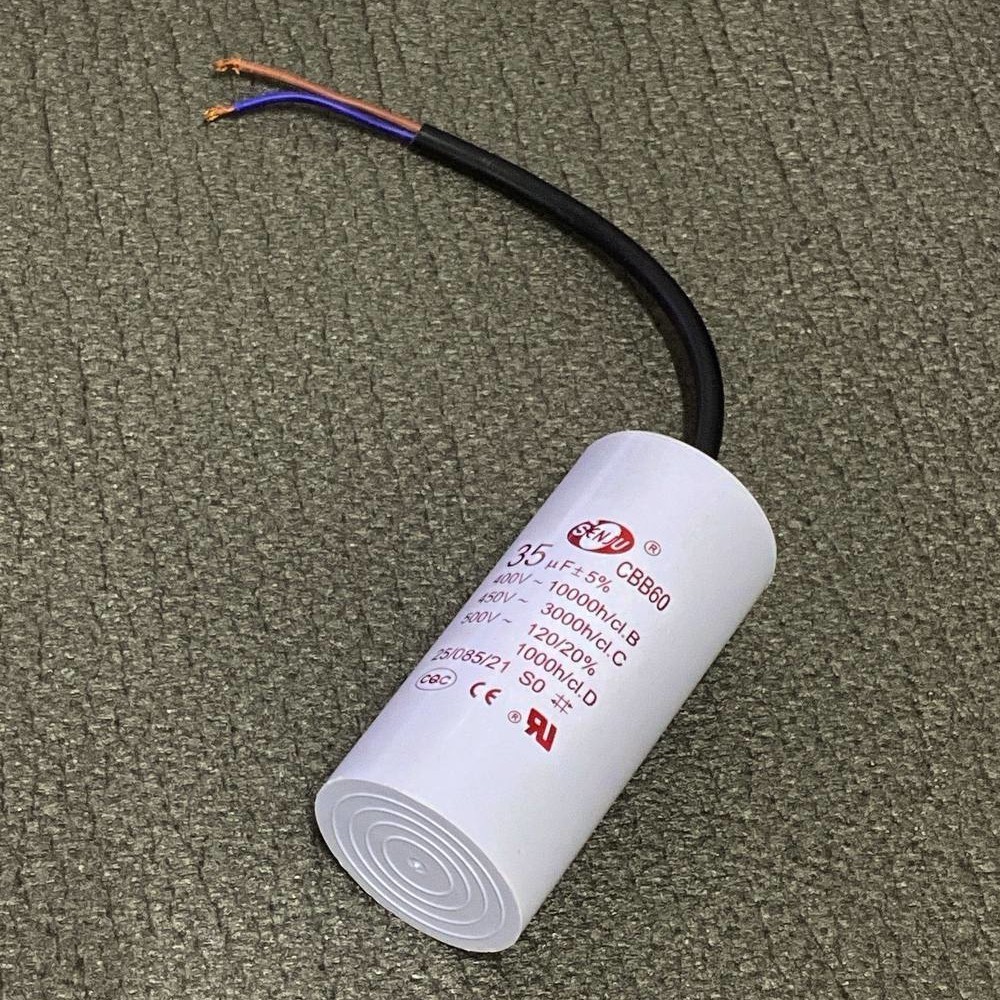 | CBB-60 35mkf - 450 VAC (±5%) Гибкі вивод. Конденсатор фазосдвигающий Конденсатор для пуска и работы: 450VAC, 50/60гц: 35 мкФ, 5%. 45х93 мм.