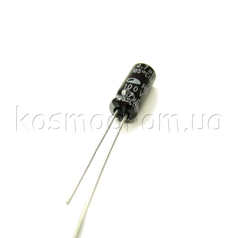 ECAP-RD-4,7mkf - 100v (105°C) (RD) Конденсатор электролитический Конденсатор электролитический: 4,7 мкФ, 100 В. Диаметр 5 мм. Высота 11 мм.Производитель: SAMWHA код товара: 00-00049840 Перейти в группу Конденсатор электролитический