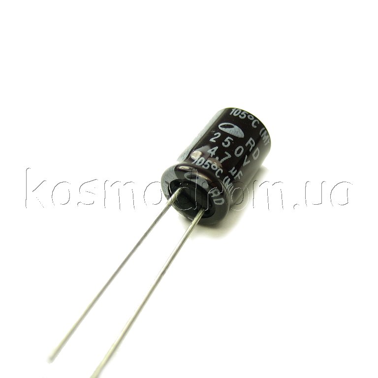 ECAP-RD-4,7mkf - 250v (105°C) (RD) Конденсатор электролитический Конденсатор электролитический: 4,7 мкФ, 250 В. Диаметр 8 мм. Высота 11,5 мм.Производитель: SAMWHA код товара: 00-00050552 Перейти в группу Конденсатор электролитический