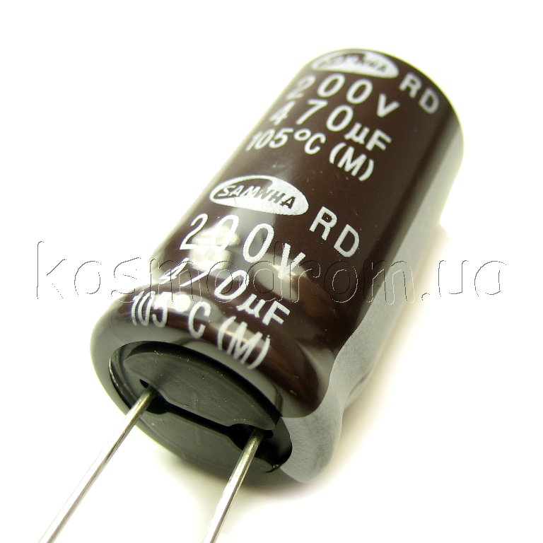 ECAP-RD-470mkf - 200v (105°C) (RD) Конденсатор электролитический Конденсатор электролитический: 470 мкФ, 200 В. Диаметр 22 мм. Высота 41 мм. RD2D477M22041BBПроизводитель: SAMWHA код товара: 00-00050625 Перейти в группу Конденсатор электролитический