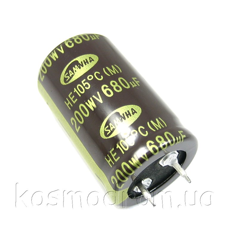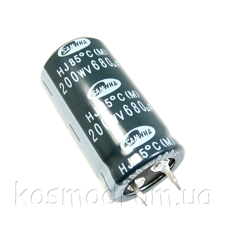 ECAP-HK-680mkf - 200v** (105°C) (HK) Конденсатор электролитический Конденсатор электролитический: 680 мкФ, 200 В. Диаметр 22 мм. Высота 45 мм.Производитель: SAMWHA код товара: 00-00050678 Перейти в группу Конденсатор электролитический