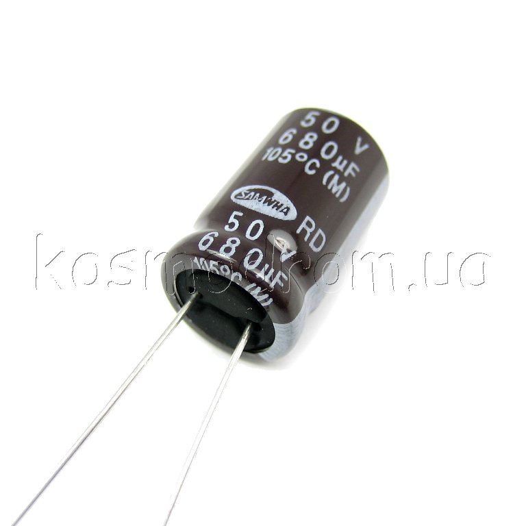 ECAP-RD-680mkf - 50v (105°C) (RD) Конденсатор электролитический Конденсатор электролитический: 680 мкФ, 50 В. Диаметр 13 мм. Высота 20 мм.Производитель: SAMWHA код товара: 00-00050631 Перейти в группу Конденсатор электролитический