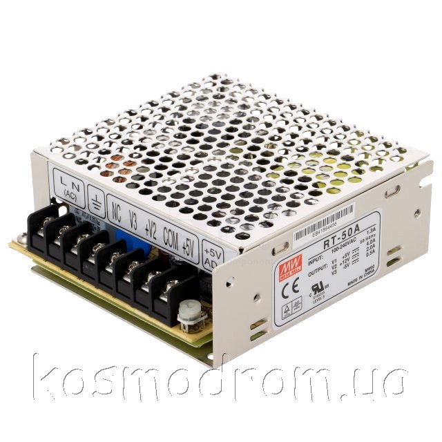 | RT-50A Модульный источник питания в металлическом корпусе AC/DC преобразователь: в металлическом корпусе 50 Вт:количество выходов 3: выходное напряжение 5В/12В/-5В,вых.ток 4А/2/0.5А: Вход: 88...264VAC / 125...373VDC: -25...70°C