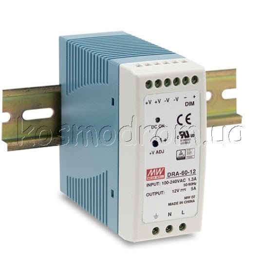 AC-DC сетевой преобразователь,на DIN рейку- P вых : 60 Вт , Выходное напряжение 12В , U1 : 12…15 В , до 5 А, количество выходов 1