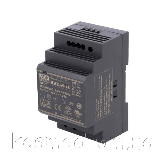AC/DC преобразователь: на DIN рейку 75 Вт выходное напряжение 48В,вых.ток 1.6А вход: 85…264VAC / 120…370VDC -10...60°C, количество выходов 1