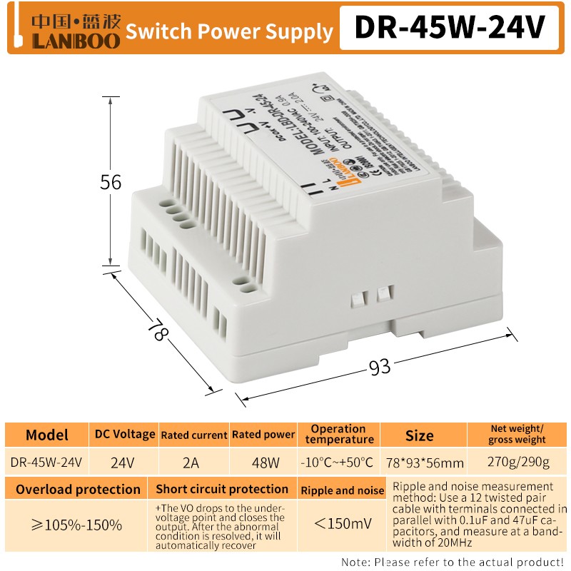 AC/DC преобразователь: на DIN рейку 45 Вт выходное напряжение 15В,вых.ток 2.8А вход: 85…264VAC / 120…370VDC 0...45°C, количество выходов 1
