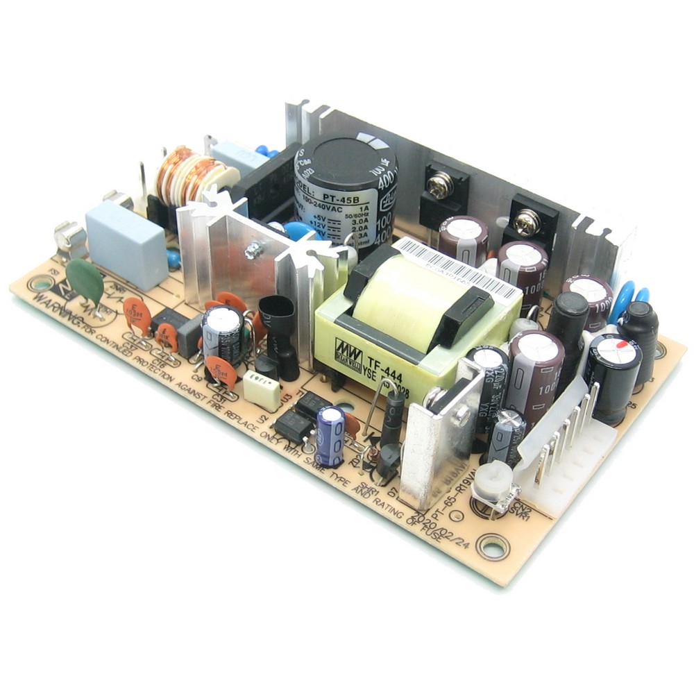 | PT-45B Бескорпусный источник питания AC/DC преобразователь: без корпуса 45 Вт,количество выходов 3:Выходное напряжение 5В/12В/-12В,Вых.ток 5А/2.5А/0.5А,вход: 90…264VAC / 120…370VDC -10...60°C
