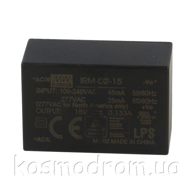 | IRM-15-15 Модульный сетевой источник питания на плату AC/DC, 15W, Вход: 85-305VAC/120-430VDC, Выход: 15V/1A, розмеры 52.4x27.2x24 мм, -30...+70 C