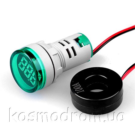 | AD101-22AM-Green Амперметр Цифровой панельный амперметр. Круглой формы. Трехсивольный. Диапазон измерения 0...100А. Точность: +/-1А. Трансформатор тока в комплекте. Цвет свечения: Зеленый