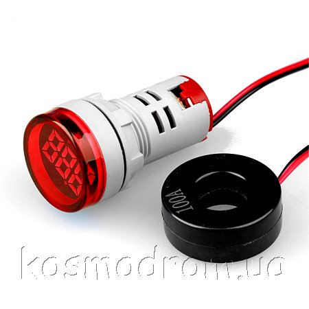 | AD101-22AM-Red Амперметр Цифровой панельный амперметр. Круглой формы. Трехсивольный. Диапазон измерения 0...100А. Точность: +/-1А. Трансформатор тока в комплекте. Цвет свечения: Красный