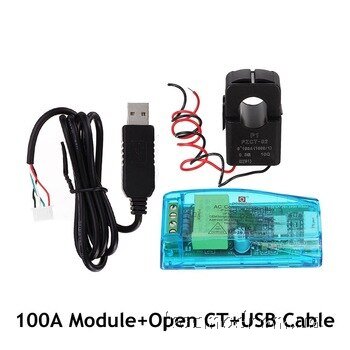 | PZEM-004T Измеритель мощности Цифровой мультиметр 4 В 1 (Вольтметр, Амперметр, Измеритель мощности, Счетчик энергии) Диапазон измерения тока: до 100 А. Трансформатор и TTL to USB Cable.