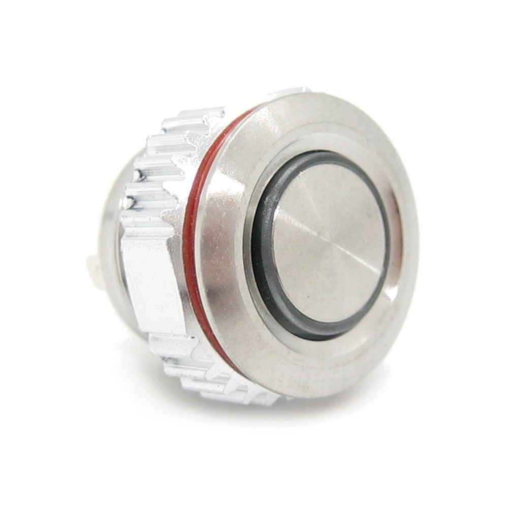 LB12E-P10Z-ER5-24V-N Кнопка антивандальная круглая, 12 мм, плоская, нормально открытая, С ФИКСАЦИЕЙ, круговая LED, RED, 5-24V, латунь никелированная, MAX: 7A/250VAC