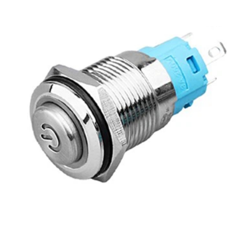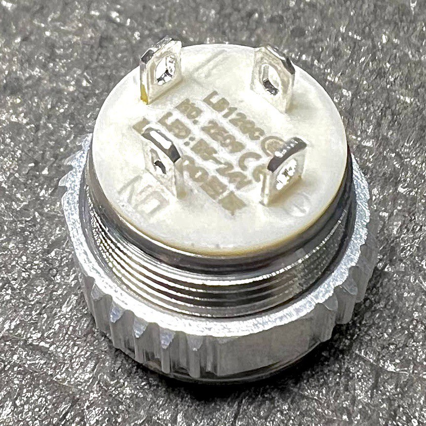 LB12E-P10Z-E-N Кнопка антивандальная круглая, 12 мм, плоская, нормально открытая, С ФИКСАЦИЕЙ, ,без подсветки, латунь никелированная, MAX: 7A/250VAC