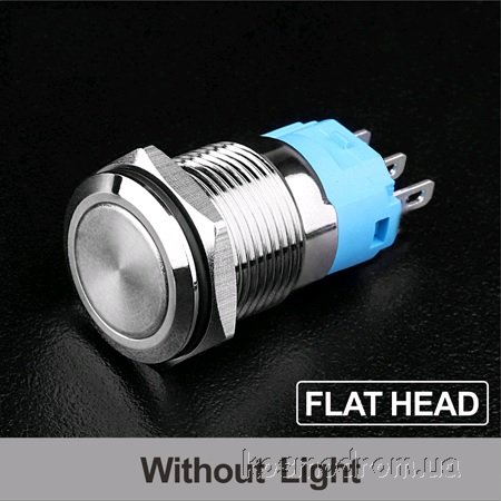 LB12E-P10F-E-N Кнопка антивандальная круглая, 12 мм, плоская, нормально открытая, без фиксации, ,без подсветки, латунь никелированная, MAX: 7A/250VAC