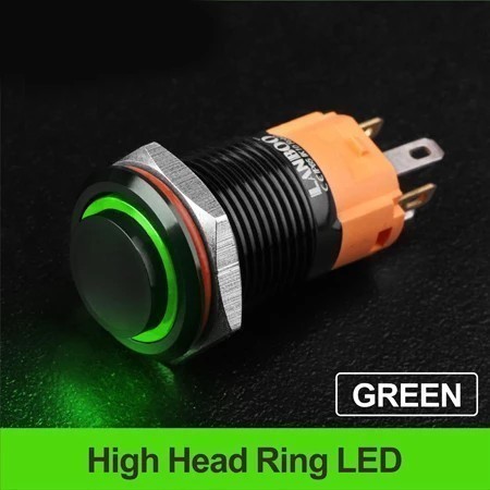 | LB16A-G11Z-EG3-8V-N Кнопка антивандальная выпуклая, нормально открытая, С ФИКСАЦИЕЙ, круговая LED, GREEN, 3-8V, латунь
