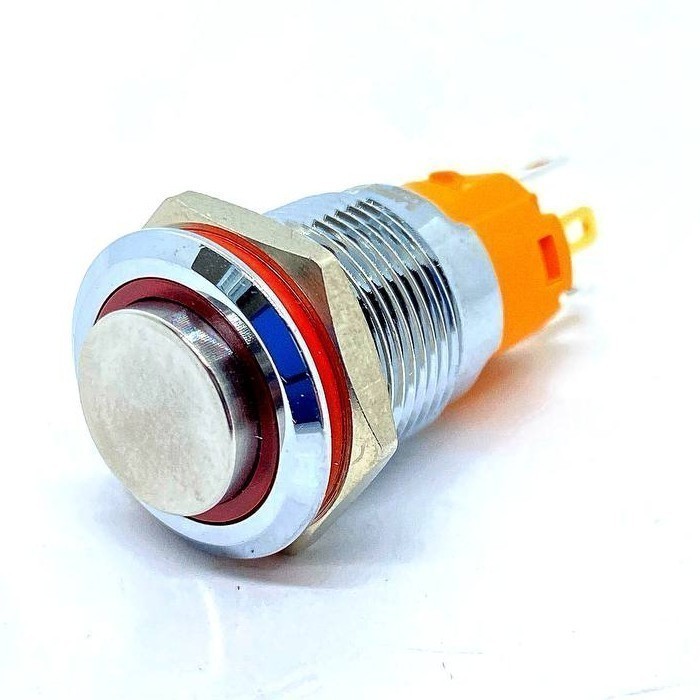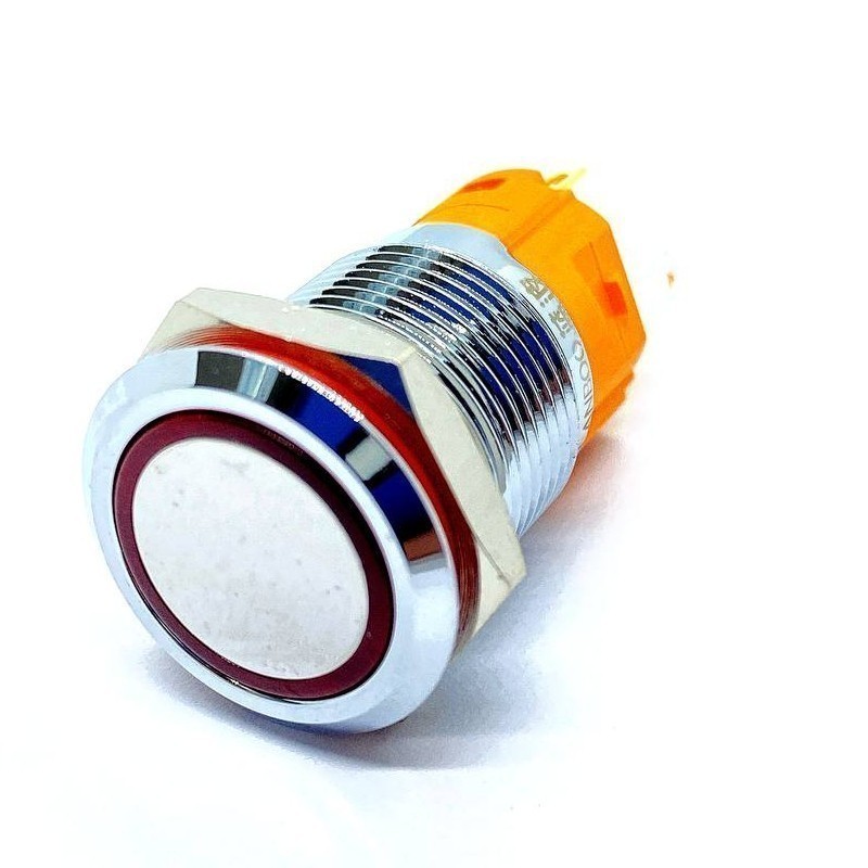 | LB16A-P11Z-ER9-24V-N Кнопка антивандальная плоская, нормально открытая, С ФИКСАЦИЕЙ, круговая LED, RED, 9-24V, латунь